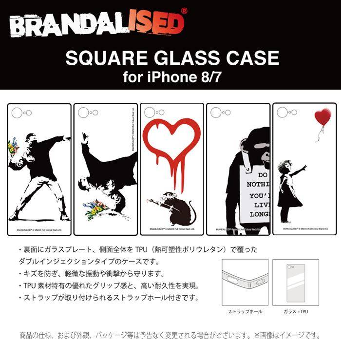 iPhone8/7 対応 iPhone 8 iPhone 7 ケース カバー バンクシー スクエアガラスケース Banksy アート グラフィック ストリートアート バンクシーiPhoneケース グルマンディーズ KSY-01