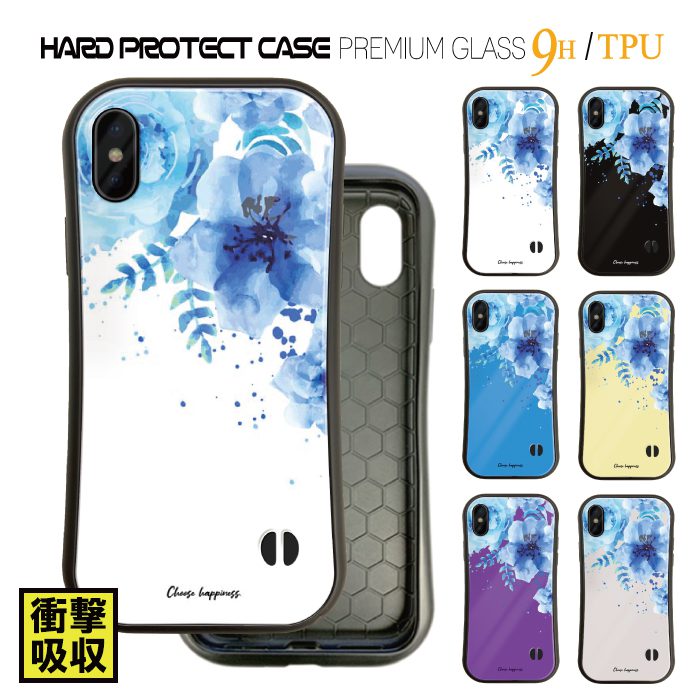 スマホケース 携帯ケース 携帯カバー ガラスケース ハードケース iPhoneケース iPhone11ケース iPhone8ケース 耐衝撃 強化ガラス iPhone XS Max iPhone XR iPhone8 iPhone7 iPhoneX 花柄 ローズ 桜 バラ 花柄 薔薇 フラワー 青 ブルー 水彩画