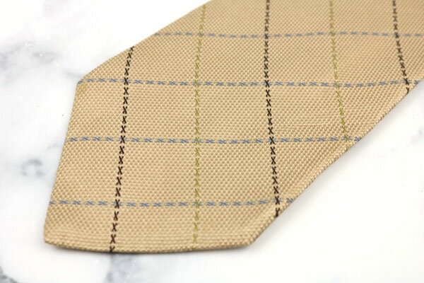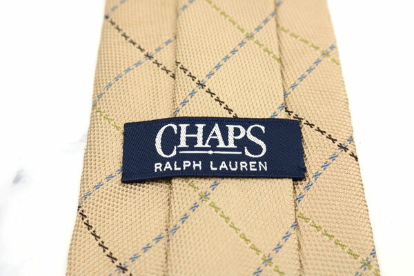 チャップスラルフローレン CHAPS Ralph Lauren 日本製 シルク チェック柄 ベージュ シルク ブランド ネクタイ 送料無料 【中古】