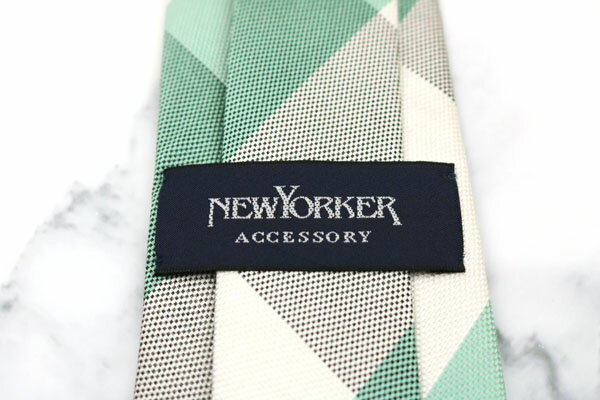 ニューヨーカー NEWYORKER 日本製 シルク チェック柄 グリーン シルク ブランド ネクタイ 送料無料 【中古】【良品】