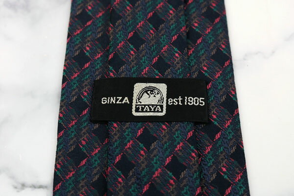 銀座田屋 GINZA TAYA エクストラクオリティ 日本製 シルク チェック柄 ネイビー シルク ブランド ネクタイ 送料無料 【中古】【良品】
